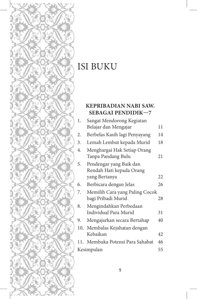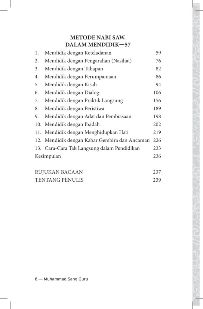 Dengan indah dan menggugah, buku ini mengungkapkan karakter Rasulullah saw. sebagai guru. Diuraikan pula apa saja metode pendidikan beliau serta rahasia keberhasilan beliau dalam membentuk manusia seutuhnya. Uraiannya bukan hanya teoretis, tetapi juga disertai dengan banyak sekali contoh nyata dan langkah praktis.